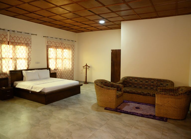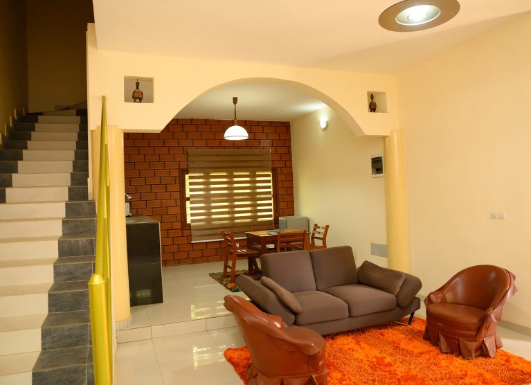 Deux(02) chambres simples plus une chambre principale avec Jacuzzi. Garage, salon et cuisine. Petit déjeuner et accès à la piscine compris.